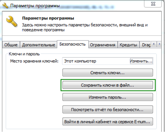 2. В своем WebMoney Keeper Classic в пункте меню "**Инструменты "→ "Параметры программы"**. Далее перейдите на вкладку **"Безопасность"** и нажмите кнопку **"Сохранить ключ в файл"**. Пройдите процедуры, которые предлагает выполнить WM Keeper. Укажите путь для сохранения файла ключей, дважды введите ваш пароль от файла ключей.